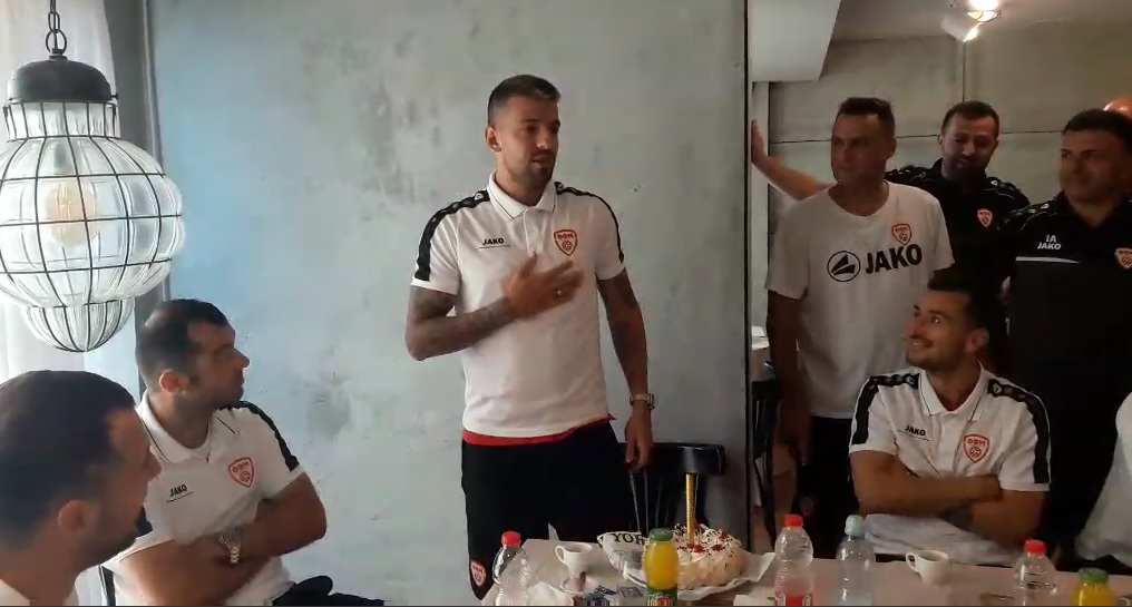 За време на денешниот ручек пред заминување во Бер Шева на квалификацискиот натпревар со Израел, македонските репрезентативци приредија мало изненадување со торта честитајќи го роденденот на Александар Трајковски кој денеска полни 27 години.