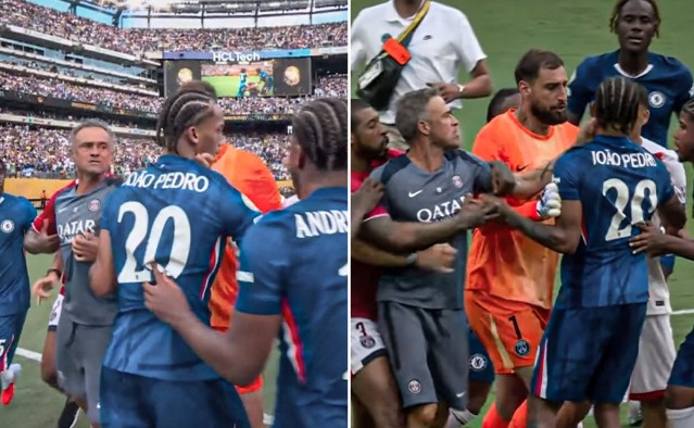 Неверојатна случка го одбележа крајот на финалето на клупскиот мундијал во САД откако тренерот на ПСЖ, Луис Енрике, го удри напаѓачот на Челси, Бразилецот Жоао Педро.