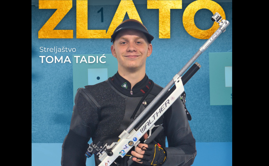 Хрватска го освои својот прв златен медал на летниот Европски младински олимписки фестивал (EYOF) во Скопјe. На четвртиот ден од натпреварувањето, за неа се погрижи стрелецот Тома Тадиќ, кој ја потврди улогата на фаворит со најдобриот настап во првиот дел од натпреварувањето во дисциплината воздушна пушка од 10 метри.
