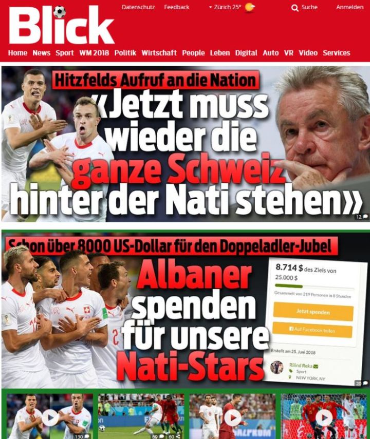 Швајцарскиот весник „Блик“ објави дека албанските навивачи со овој оваа акција сакаат да искажат почит кон играчите на Швајцарија кои на специфичен начин ги прославија головите. Ваквиот потег на Албанците наиде на големи симпатии во Швајцарија.