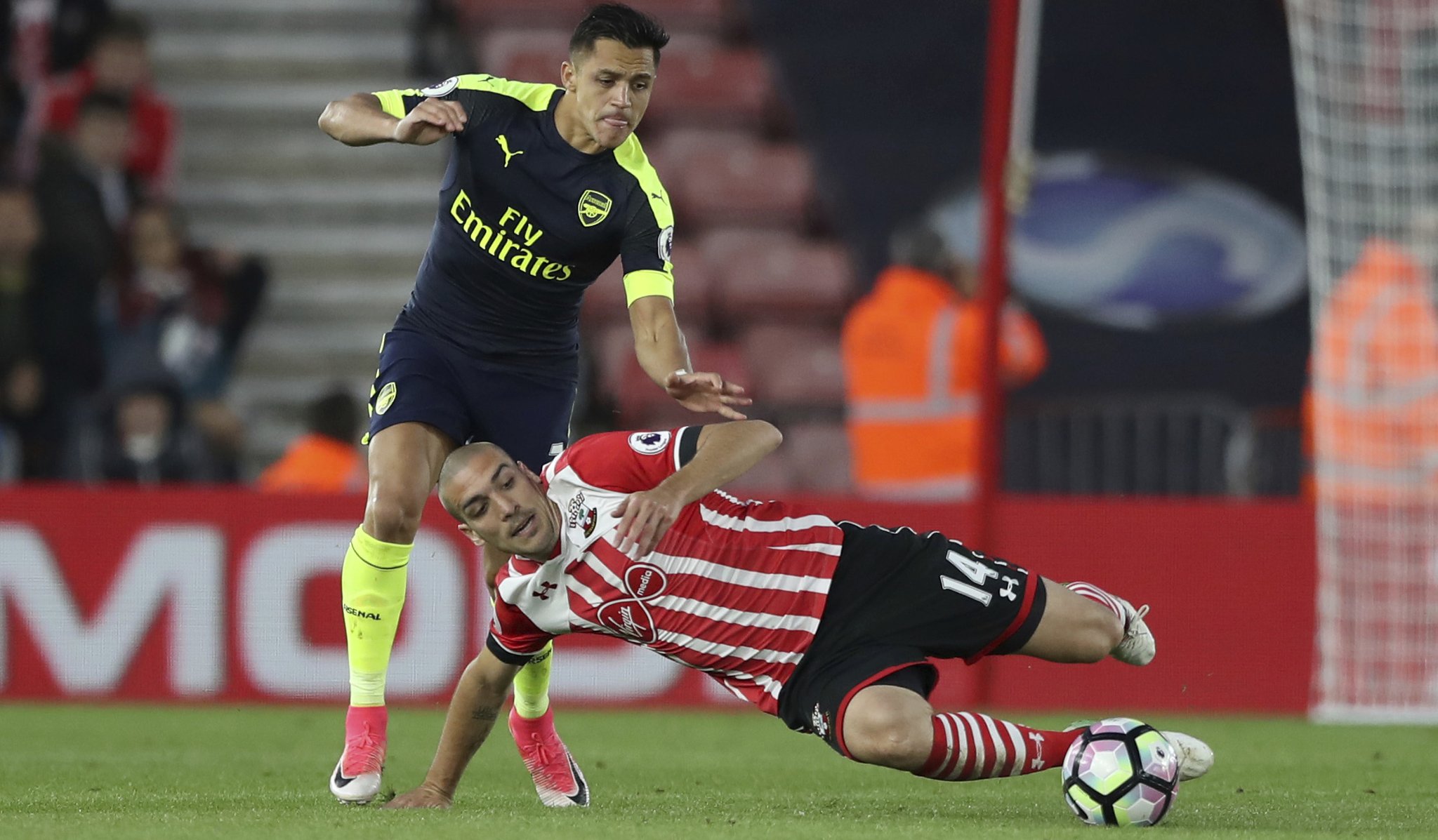 Арсенал дефинитивно не се откажува од трката за место во ЛШ откако „топчиите“ по триумфот над Манчестер јунајтед вечерва славеа и на незгодното гостување против Саутемптон со 0-2. Човек на одлука беше Алексис Санчез, кој го отвори резултатот, а потоа по неговиот центаршут Жиру ги постави конечните 0-2 за огромни три бода за тимот на Арсен Венгер.