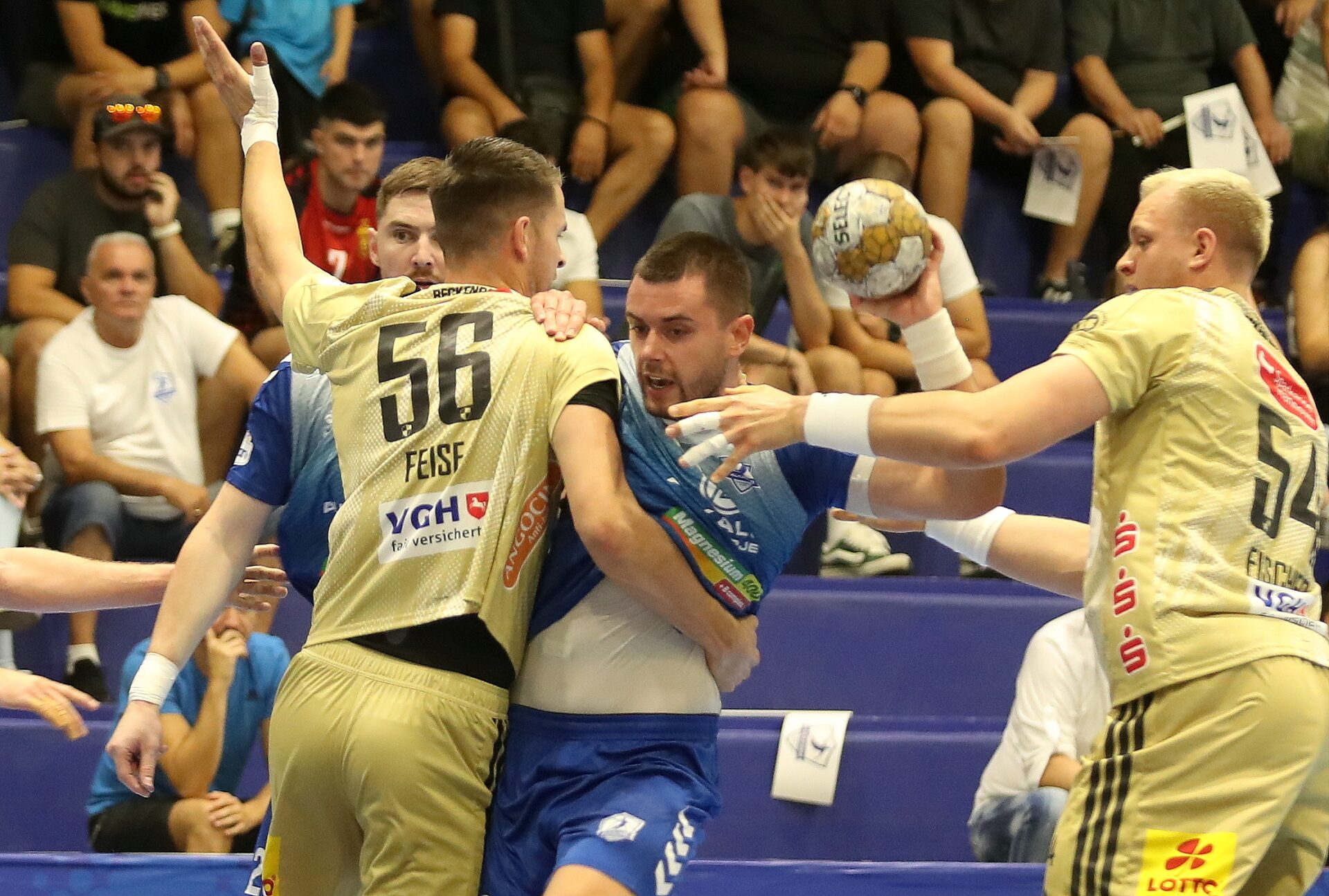 Вистинска штета, при 20-18 Серафимов не реализираше пенал, по што гостите експресно казнија за една минута израмнувајќи на 20-20. Гостите поведоа и со 22-23, но следеше одговор на Алкалоид и експресен пресврт, со маестралниот гол на Тордарсон за 24-23. Се играше брзо и ефикасно на двете страни, Борзаш постигна неколку погодоци за Алкалоид, па во последните седум минути се влезе со израмнети 27-27. Кизиќ одбрани два зицера и спречи Хановер да се одлепи при 27-29, при 28-29 Костески не реализираше зицер од крило, па овој меч заврши со минимална победа на гостите од Бундес-лигата.