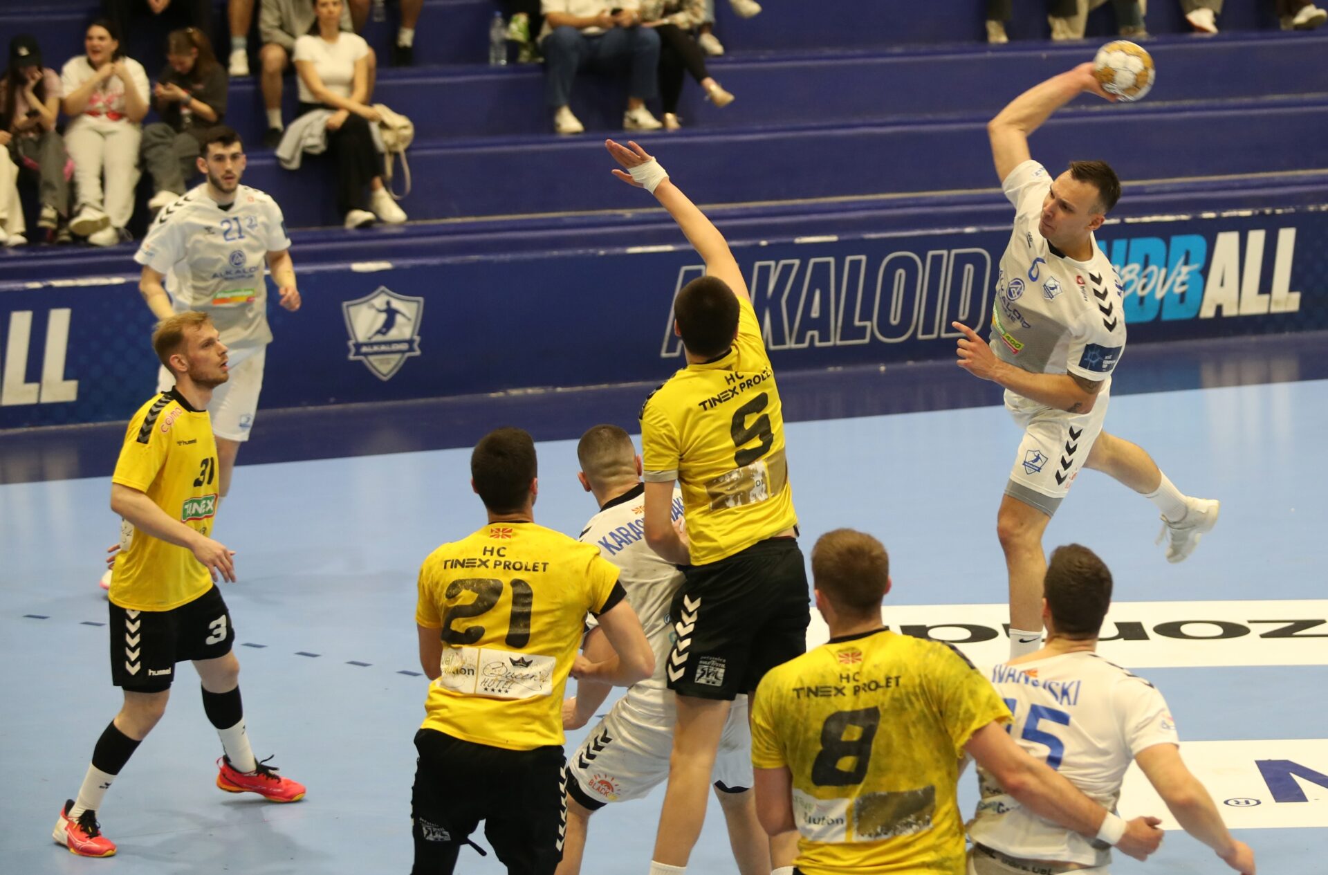 Пролет парираше дваесетина минути, Алкалоид имаше само еден гол предност (11-10) кога фаворитот додаде гас, заигра далеку поангажирано во одбраната и експресно успеа да се одлепи резултатски, на одмор заминувајќи со 18-12. „Сино-белите“ го отворија второто полувреме со четири гола во низа, набрзина поведувајќи со 22-12, по што ја зголемуваа предноста како што одминуваше времето, за на крајот да слават со конечни преубедливи „плус 22“.