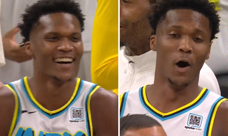 Bennedict Mathurin punches De’Andre Hunter, and Hunter retaliates by approaching him and pushing Mathurin to the floor (with replays).