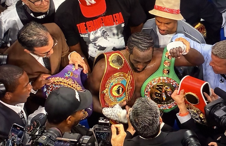 Крафорд беше апсолутен шампион во категориите до 66 и до 69 килограми, а одличниот Американец сега успеа да стане и апсолутен шампион во ИБФ, ВБЦ, ВБО и ВБА појасите во категоријата до 76 килограми откако во фантастична борба слашве ннад Саул Алварес во Лас Вегас.