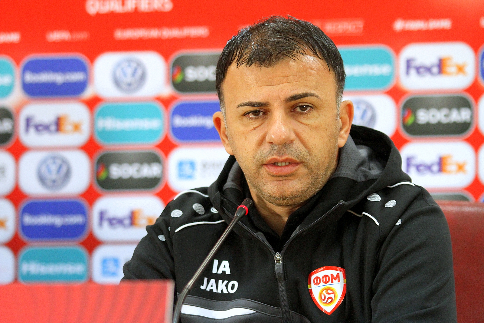 „Најпрво посакувам Словенците да имаат безбеден лет, тоа е најважно. Што се однесува до мечот, ние единствено сме концентрирани на нашата игра и концентрација да дојдеме до посакуваната победа. Може да кажам дека ќе биде дуел на две репрезентации кои добро се познаваат. Секако самодовербата е на високо ниво и кај двата тима, па верувам дека ќе пресуди мотивацијата, желбата, инаетот… Имаме проблеми со повредите, но знам дека на терен ќе играат 11 подготвени фудбалери за борба, игра и за она што сите го посакуваме – победа“, изјави селекторот Игор Ангеловски на прес – конференцијата во пресрет на мечот.