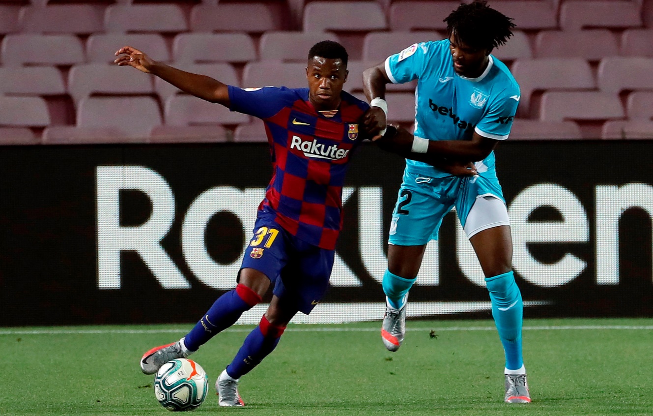 Гостите одолеваа на притисокот на Барселона речиси цело полувреме, но сепак младата ѕвезда Ансу Фати се погрижи Барса на одморот да замине со предност. Во 41.минута ја затресе мрежата на Леганес по проигрувањето од Жуниор Фирпо.