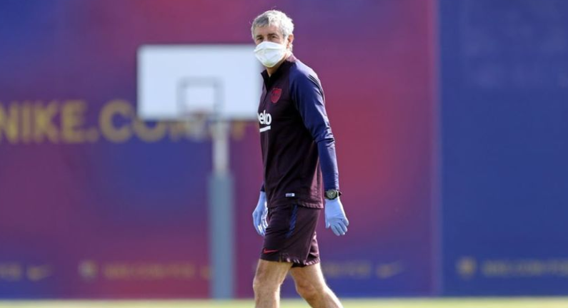 Шпанскиот гигант Барселона го одржа првиот тренинг по паузата поради пандемијата од коронавирусот. Тренерот на Каталонците Кике Сетиен со заштитна опрема ги построи своите избраници. Меси, Гризман, Суарез, Видал… Сите се подготвени за продолжување на сезоната.