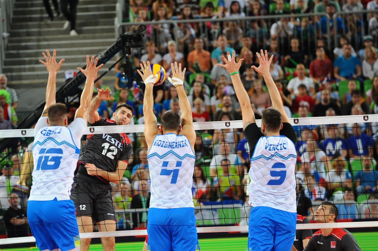 Домаќинот Словенија со 3-0 ја совлада Турција во вечерниот термин во „Стожице“. Голема борба имаше во првиот сет, а Словенците го добија со 30-28, во вториот славеа релативно лесно (25-16), а во третиот иако имаше неизвесност го комплетираа со 25-23.