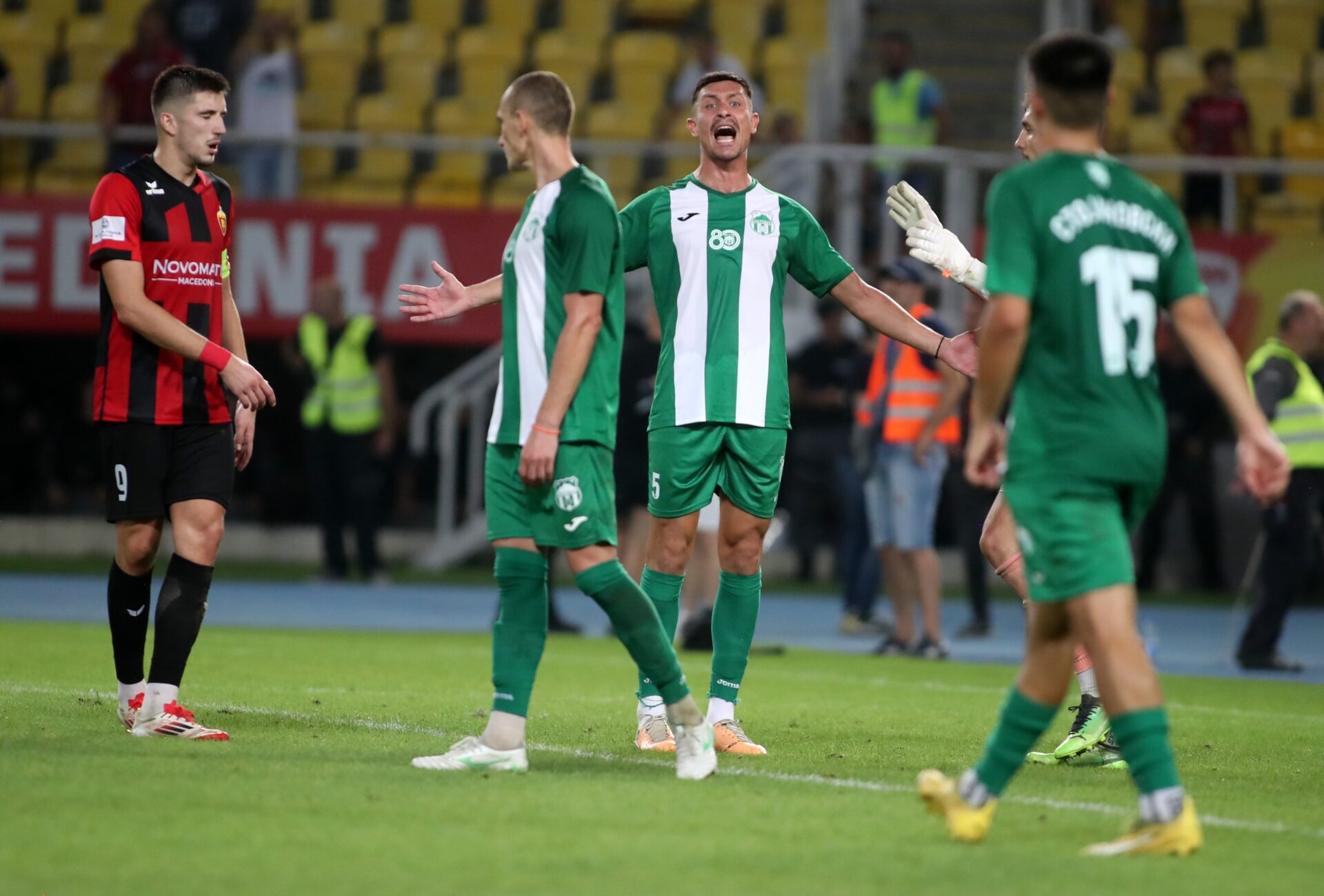 Домаќините поведоа со 1-0 со голот на Нзеге во 30. минута, но Ѓорѓиев поради играње со рака го поништи овој погодок.