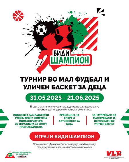 На реконструираните мултифункционални игралишта ширум Македонија, во тек е турнир БИДИ ШАМПИОН, кој започна на 31.05.2025. Со овој турнир, преку спортски активности,  промовираме фер игра, тимски дух и позитивни вредности.  Во рамки на турнирот планирана е серија на натпревари во мал фудбал и уличен баскет за деца на возраст од 10 до 14 години. Во тек е реализацијата на 16 натпревари во мал фудбал и 16 натпревари во уличен баскет. Мини турнирот е организиран како систем по групи, по што ќе следи вкрстување во нокаут фаза.