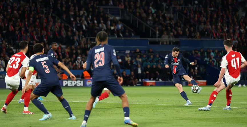 Фудбалерите на Пари Сен Жермен поведуваат со 1-0 на домашен терен во реванш натпреварот од полуфиналниот двомеч против Арсенал во Лигата на шампионите.