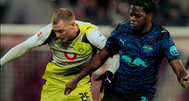 Борусија Дортмунд со гол во шестата минута во судиското надополнување, успеа да се спаси од пораз на гостувањето кај Лајпциг. „Милионерите“ беа на праг да го запишат вториот неуспех во првенството, но на крајот успеаја од 2-0, да стигнат до 2-2 и да извлечат бод.