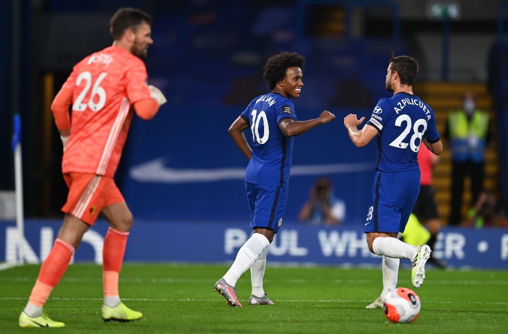 “Сините” поведоа со голот на Гиру во 28.минута, а Вилијан во 43.минута од пенал зголеми на 2-0. Баркли во 92.минута ги постави конечните 3-0.