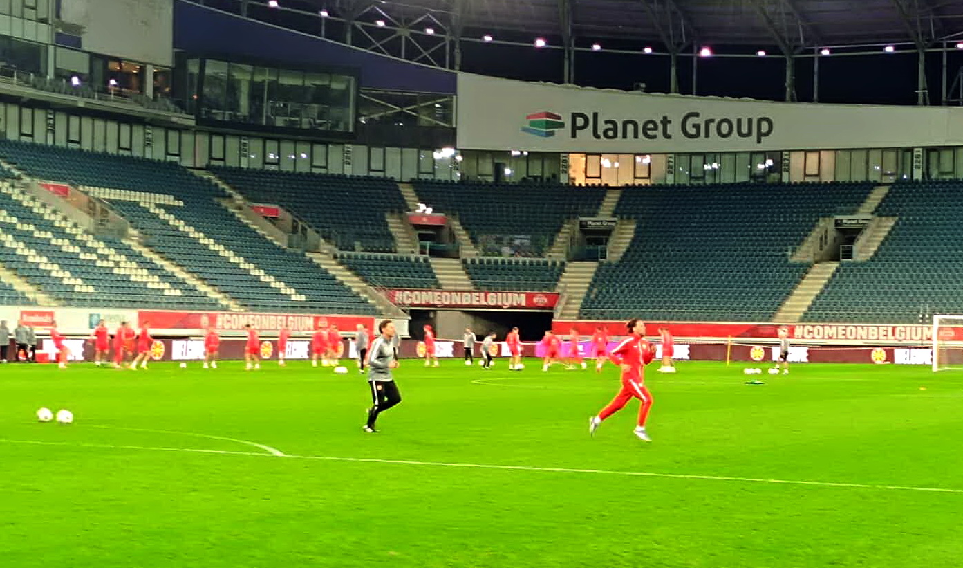 Еден од најдобрите македонски репрезентативци Дарко Чурлинов под „посебен режим“ издвоено од групата го одработува вечерашниот тренинг на „Планет груп арената“ во Гент.
