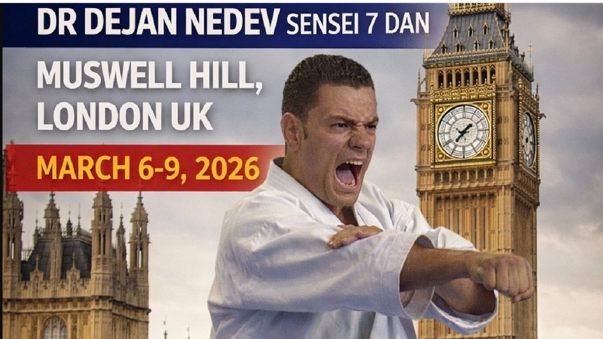 Македонскиот карате мајстор др. Дејан Недев 7 дан, од 6 до 9 март 2026 година ќе одржи карате семинар во Лондон, Англија. На семинарот ќе учествуваат каратисти од повеќе клубови, кои ќе имаат можност да ги усовршат техниките во традиционалното карате преку тренинзи, кати, бункаи, фукуго, енбу и кумите.