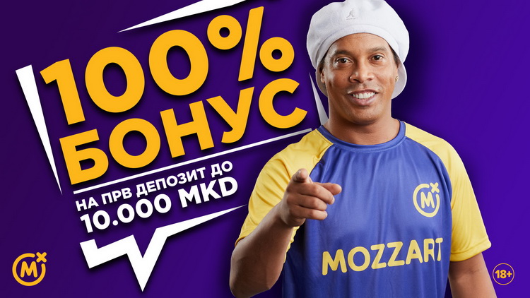 Сите новорегистрирани корисници на www.mozzartbet.mk кои ќе извршат уплата на депозит имаат право на бонусот “100% бонус до 10.000 денари” кој може да се искористи само еднаш. Истото важи и за веќе регистрирани корисници кои досега немаат извршено уплата на својата корисничка сметка.