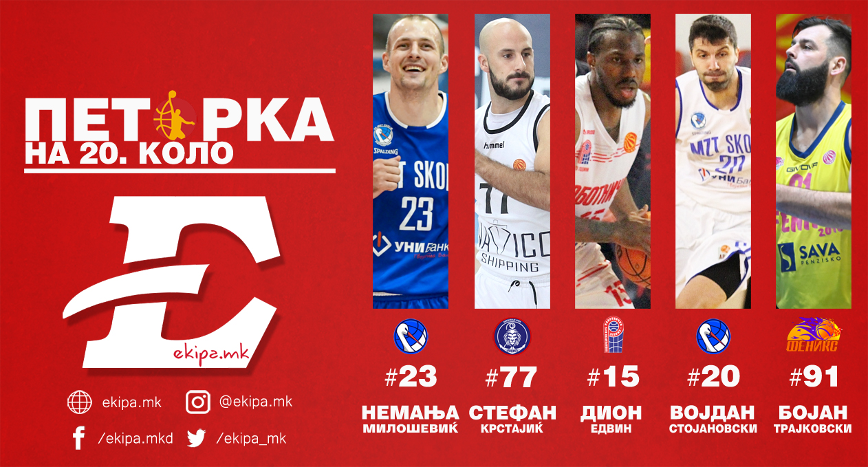 Од натпреварот на колото имаме два кошаркари, Војдан Стојановски кој со 21 поен и реализација 5/8 за три го предводеше МЗТ Скопје против ТФТ, како и Немања Милошевиќ кој „царуваше“ под обрачите со дабл-дабл од 18 поени и 15 скока.