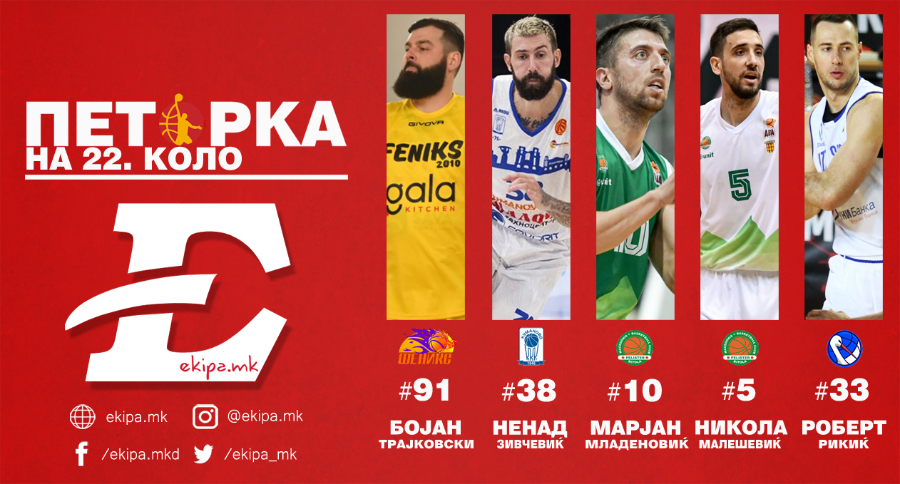 Ненад Зивчевиќ се врати од повреда со 15 поени, 8 скока и 6 асистенции против Работнички, додека Бојан Трајковски беше на чекор до трипл-дабл со 29 поени, 12 скока и 8 асистенции во новата победа на „виолетово-жолтите“. Место во идеалната петорка има и за Роберт Рикиќ кој со 17 поени, 5 скока и 5 блокови го предводеше МЗТ Скопје во Кисела Вода.