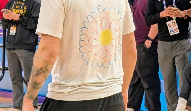 Само по себе, тоа беше обична маица за загревање на Лејкерс, но брзо стана очигледно дека е детски дизајн.