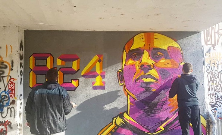 Најверните навивачи на МЗТ Скопје, членовите на Фемили Аеродром, нацртаа графит на Коби Брајант, кошаркарската суперѕвезда што го загуби животот во хеликоптерска несреќа минатиот месец во близина на Лос Анџелес.