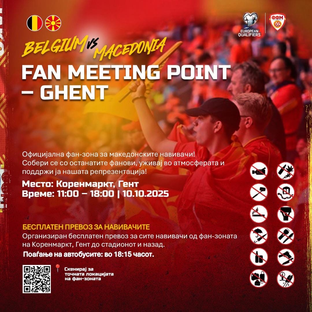 „Фан-зоната ќе биде место на собирање, дружење и заедничка поддршка за репрезентацијата пред почетокот на натпреварот. Да ја покажеме македонската поддршка и заедно да создадеме вистинска навивачка атмосфера во Гент“ – порачуваат од ФФМ.