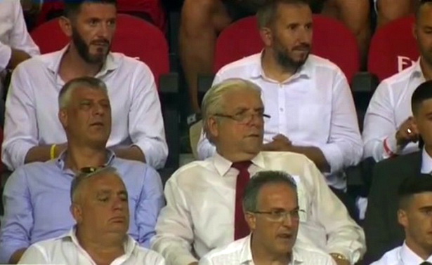 Сопственикот на Шкендија, Лазим Дестани во друштво на претседателот на Косово, Хашим Тачи го следеше натпреварот на неговиот тим против италијанскиот гигант Милан.