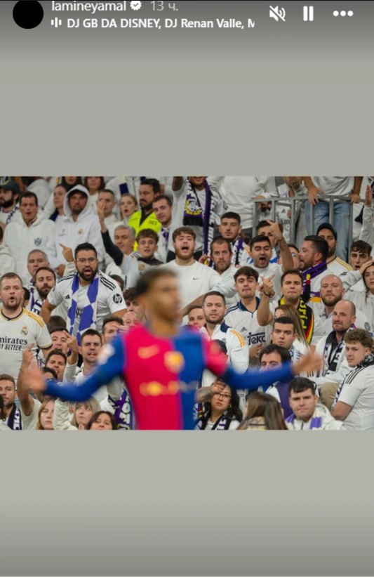 18-годишниот крилен играч на својот профил на „Инстаграм“ објави заматена фотографија од себе со раширени раце, а во позадина трибина полна со незадоволни навивачи на Реал Мадрид.