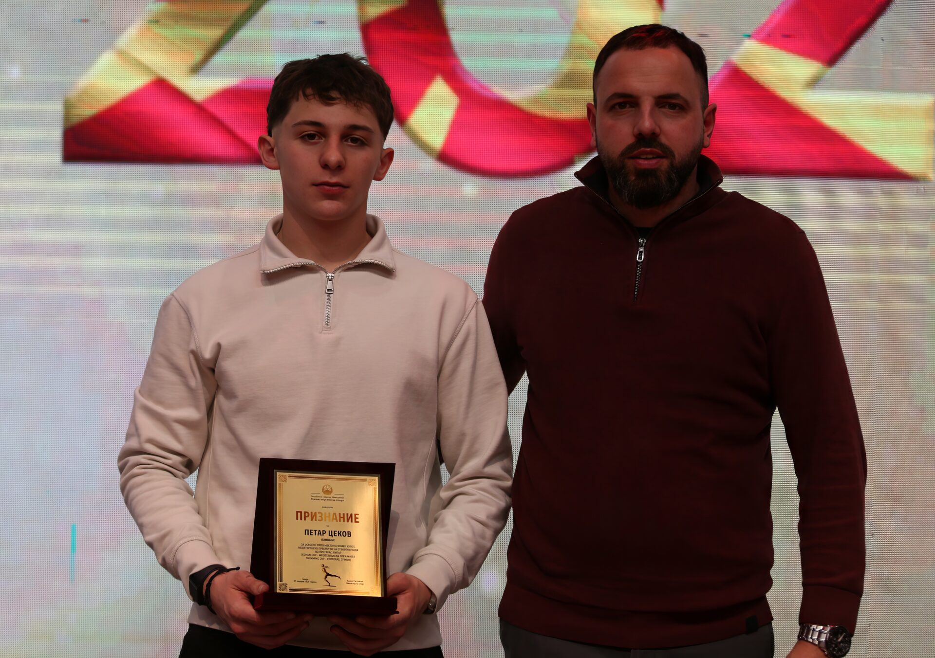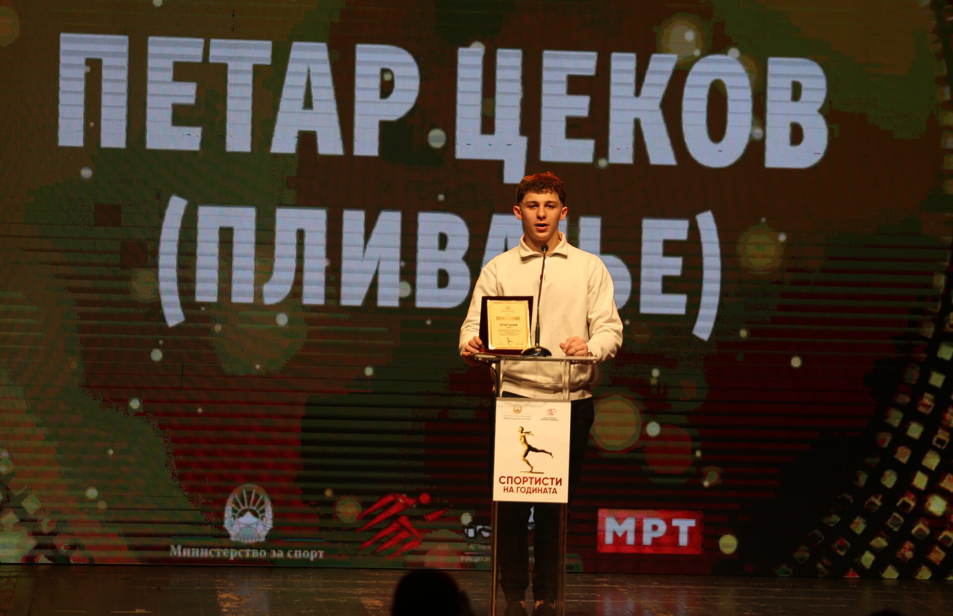 На годинашното издание на изборот „Спортист на годината 2025“ беше доделена и плакета за постигнати резултати на талентиран млад спортист. Добитник на ова признание е младиот пливач Петар Цеков.