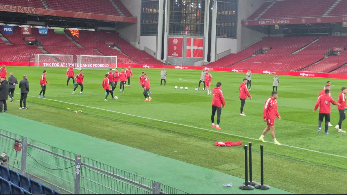 Фудбалската репрезентација на Македонија вечерва на „Паркен“ во Копенхаген го имаше официјалниот тренинг пред утрешниот бараж полуфинален натпревар против Данска за пласман на Светското првенство кое летово ќе се игра во САД, Канада и Мексико.