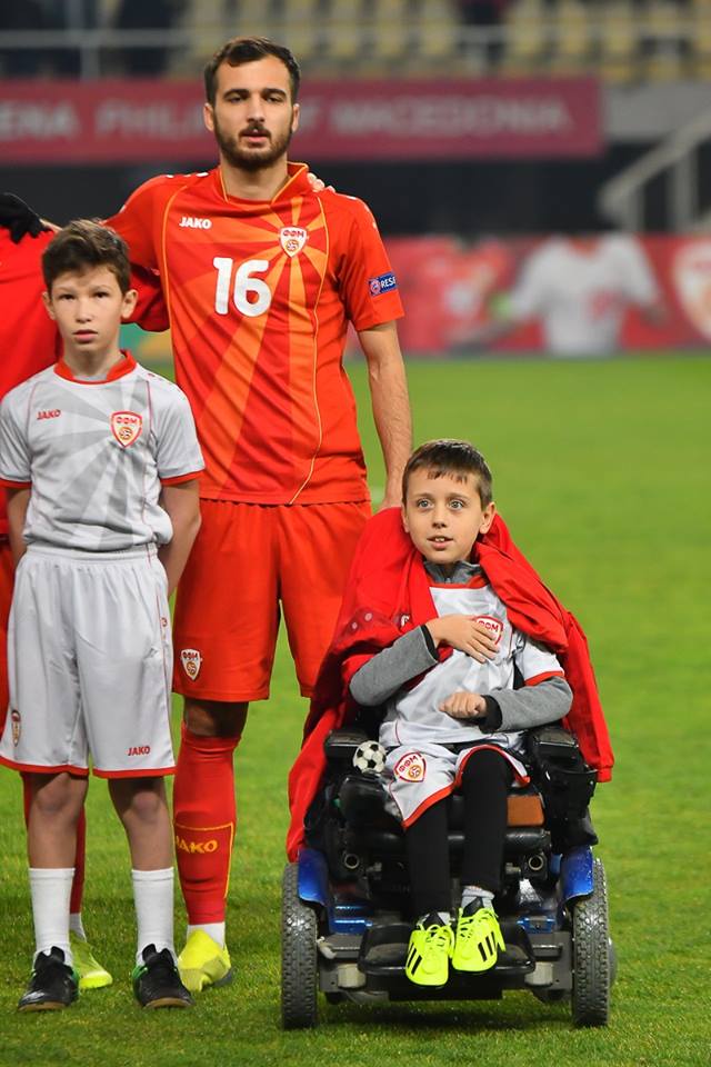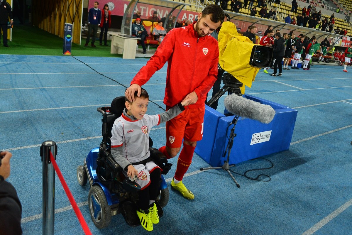 Малиот херој Јане Велкоски ден пред натпреварот им посака на фудбалските репрезентативци многу успех со Гибралтар, да победат и да го освојат првото место. Тој застана до нив и на официјалното претставување и изведување на химните, излегувајќи на теренот со најдобриот другар, Бобан Николов.