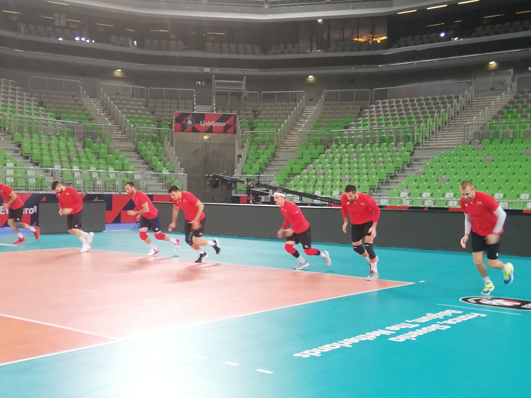 Македонија влезе во Европа и во одбојката. Нашите најдобри одбојкари го одработија официјалниот тренинг на „Стожице арена“ и го почувствуваа теренот во пресрет на утрешното деби против селекцијата на Финска. Мотиви до бескрај, желба за позитивен старт и пред се достојно презентирање на македонската одбојка во оваа силна конкуренција.
