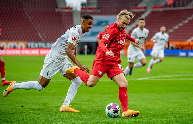 Лајпциг е лидер на табелата со 10 освоени бода по првите четири кола, откако полуфиналистот од Лигата на Шампионите попладнево триумфираше со 0-2 на гостувањето против Аугсбург. Левиот бек Анџелињо го скрши отпорот на домаќините пред самиот крај на првото полувреме, а конечните 0-2 ги постави Поулсен во 67. минута.