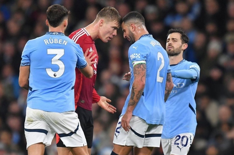 Натпреварот го одбележа и една тензија при средината на теренот, непосредно по постигнатиот гол на Јошко Гвардиол во првото полувреме кога глава до глава се најдоа Расмус Хојлунд и Кајл Вокер.