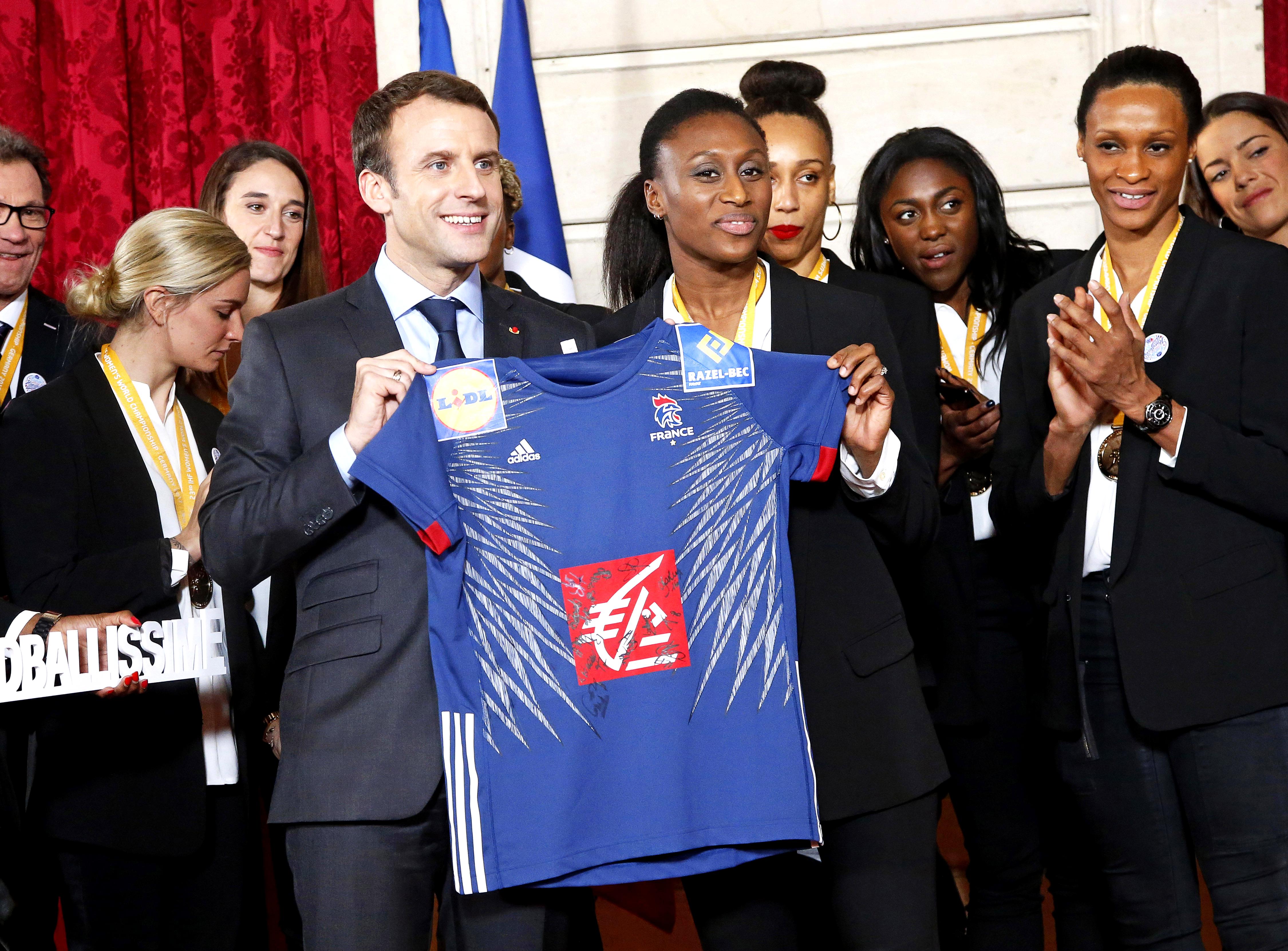 Новите европски ракометни шампионки, репрезентативките на Франција за историскиот успех добија признание и од претседателот на државата, Емануал Макрон. Светските и континентални првенки му подарија дрес на претседателот за време на приемот во Елисејската палата.