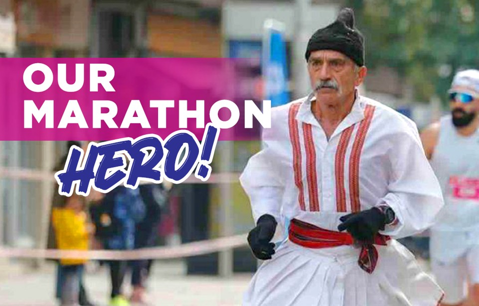Облечен во народна носија, тој ја истрча маратонската трка од 42 км и тоа со неверојатно време од 3:59:24. Неговиот дух, упорност и љубов кон трчањето се потсетник дека возраста никогаш не е пречка кога срцето трча.