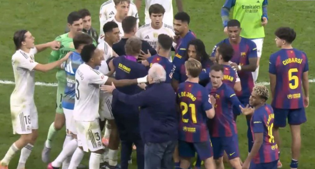 На крајот од натпреварот помеѓу Реал Мадрид и Барселона и триумфот на „кралевите“ со 2-1, избувна судир поради гест кон Ламине Јамал.