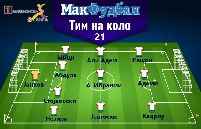 ЕКИПА го издвојува најдобриот тим на 21. коло во Првата македонска фудбалска лига, согласно изборот на специјализираниот фудбалски портал МАКФУДБАЛ.МК: