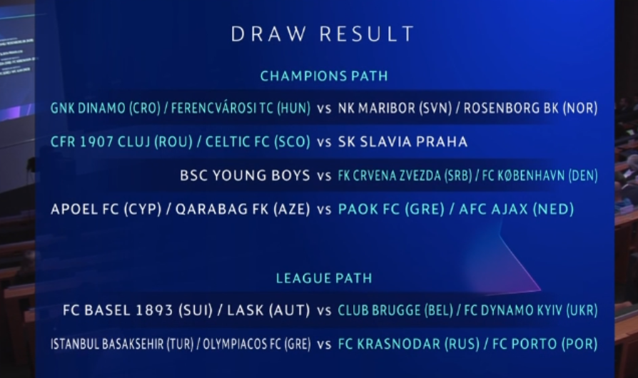 Динамо Загреб и Ференцварош, клубовите на Аријан Адеми и на Стефан Спировски, ќе имаат меѓусебна пресметка, а победникот ќе го добие подобриот од мечот меѓу Марибор и Розенборг за влез во групната фаза од елитното европско натпшреварување.