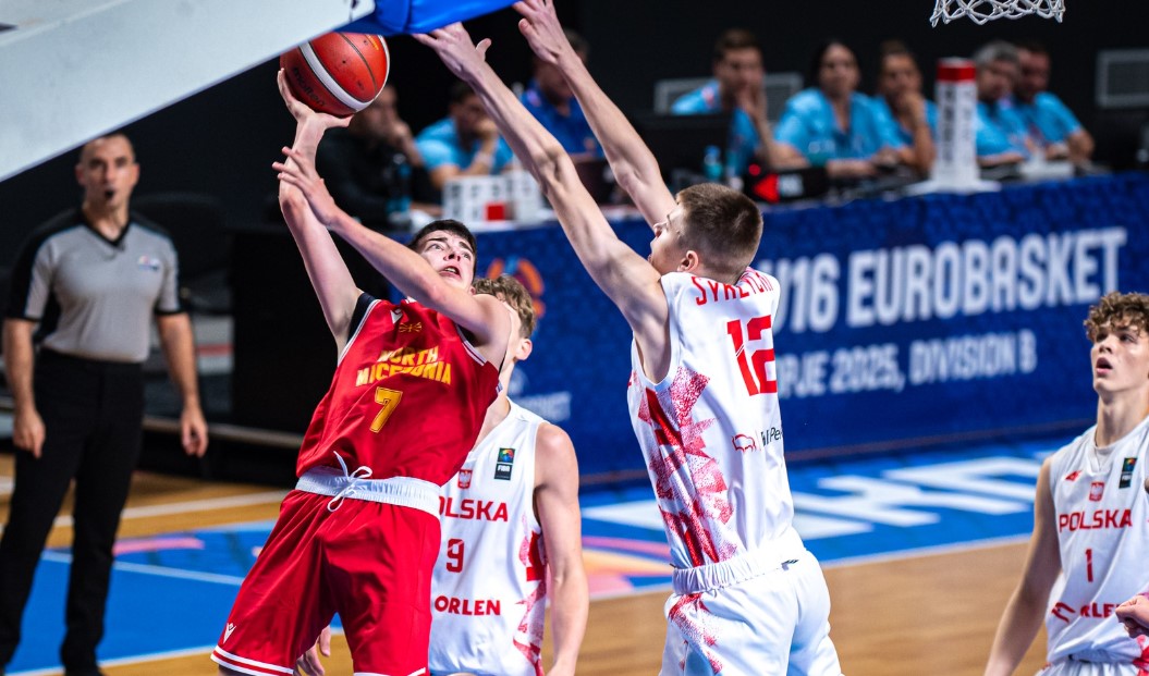 Македонската кошаркарска репрезентација до 16 години, го претрпе и третиот пораз на Евобаскетот Б-дивизија. Во меч одигран во СЦ „Јане Сандански“, репрезентацијата на Полска успеа да слави со убедливи 93-66 над нашиот национален тим.