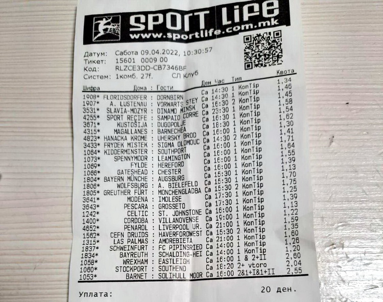 И порано имало милионски добивки, но изминатиот викенд вистинско изненадување приреди играчот во обложувалницата на Sport Life во Влае. Со тикет од само 20 денари и 27 пара, успеа да ги погоди сите и да обезбеди неверојатна добивка од 2,5 милиони денари или поточно околу 40.000 евра.