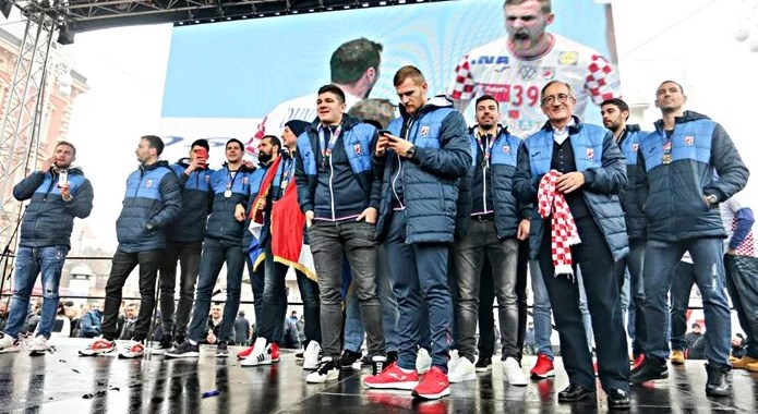 Десетици илјадници луѓе се собраа на плоштадот „Бане Јелачиќ“ како би ги пречекале ракометарите на хрватска, кои го освоија сребрениоте медал на Европското првенство. Поранешниот Вардарец, Игор Карачиќ кој доби место во идеалната постава на турнирот, со моќен говор ги поздрави сите кои беа дојдени да ги поздрават „ракометните херои“.