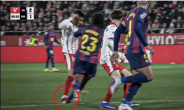 Џирона ја совлада Барселона со 2-1 на свој терен во 24. коло од Ла Лига, но победничкиот гол предизвика голема контроверза. При резултат 1-1, во акцијата што заврши со погодокот на Фран Белтран во 86. минута, Клаудио Ечевери го нагази Жил Кунде по стапалото, оставајќи го францускиот одбранбен играч на земја.