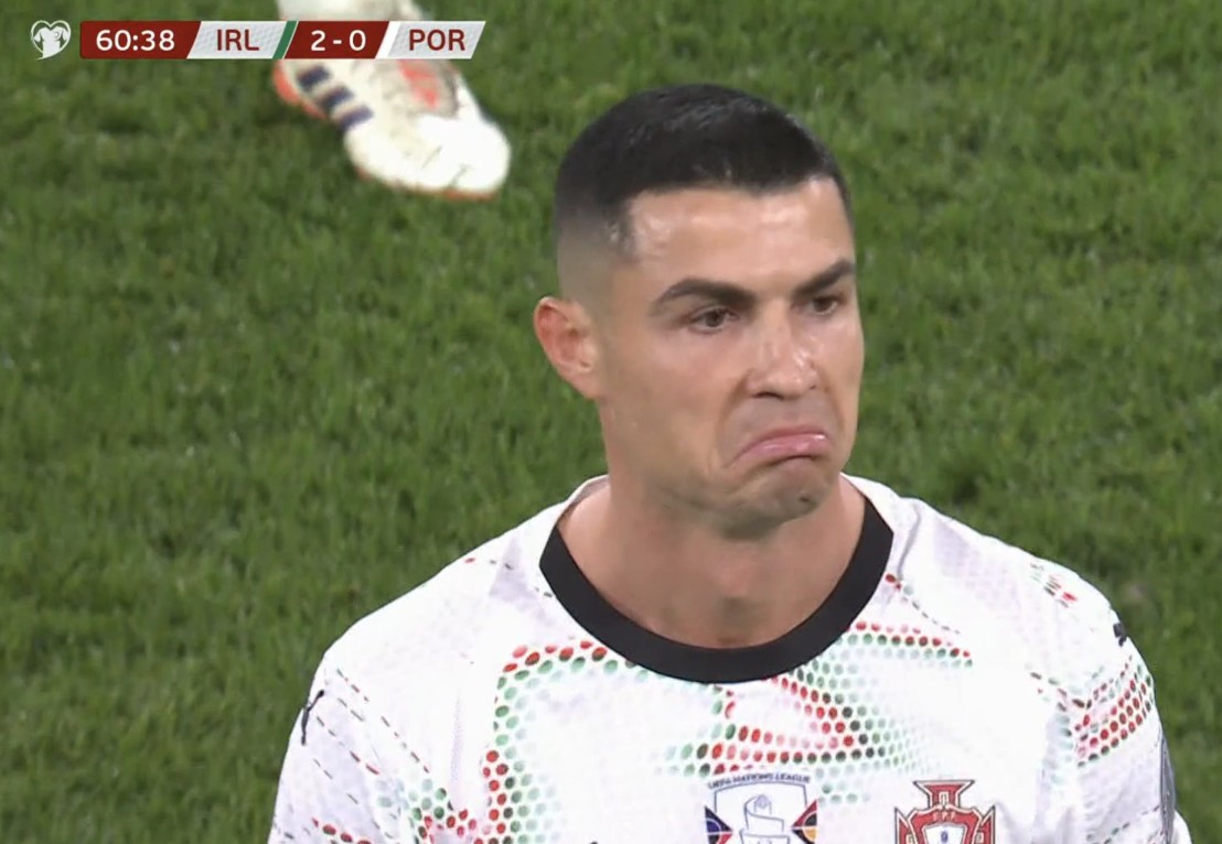 Португалците беа во негатива од 2-0 уште од првото полувреме, во вториот дел се мачеа да искреираат стопроцентна шанса, а исфрустрираниот Роналдо бесот го исфрли врз Колинс, дивјачки удирајќи го ирскиот дефанзивец во шеснаесетникот.