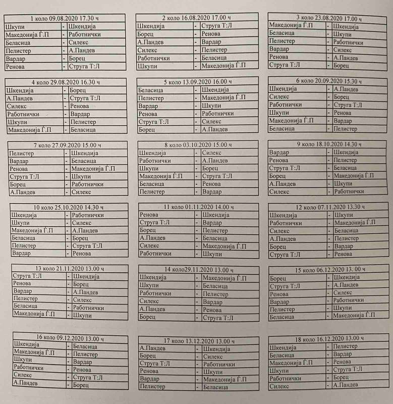 Познат е комплетниот распоред за првиот дел од сезоната 2020/21 во Првата фудбалска лига. Шампионатот треба да почне на 9.август, а есенската полуетапа ќе заврши со 18.коло кое е планирано за 16 декември. Вардар се уште е во хаотична ситуација, неизвесно е дали и кога ќе ги стартува подготовките, но, сепак, мечевите со Шкендија и понатаму треба да бидат дерби-дуели во прволигашката конкуренција. Првиот дуел е закажан за 18 октомври на арената „Тоше Проески“ во Скопје.