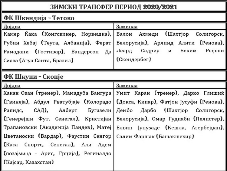 Комплетна трансфер листа – Зимски преоден рок: Шкупи со шампионски амбиции, „пандевци“ – ресетирани