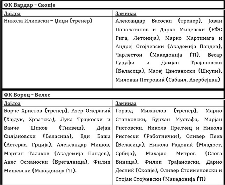 Факт е дека најмногу играчките редови ги освежи Шкупи, иако главно со непознати имиња од африканските земји, но и неколку препознатливи млади македонски фудбалери како Трапановски, Цветановски и Али Адем кој е донесе на позајмица од солунски Арис.