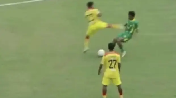 A player in the Indonesian 4th division has been BANNED FOR LIFE for this disgraceful tackle in a game recently!😳🇮🇩 pic.twitter.com/GPvryFUlt1