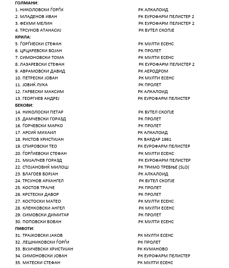СПИСОКОТ НА РЕПРЕЗЕНТАЦИЈАТА ДО 18 ГОДИНИ…