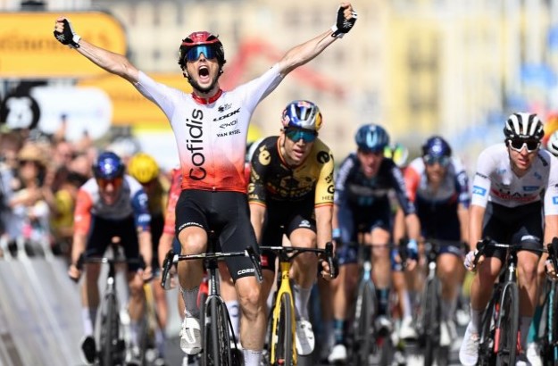 Велосипедистот на Кофидис, Виктор Лафаје е победник на втората етапа на јубилејното 110. издание на „Трката околу Франција“.